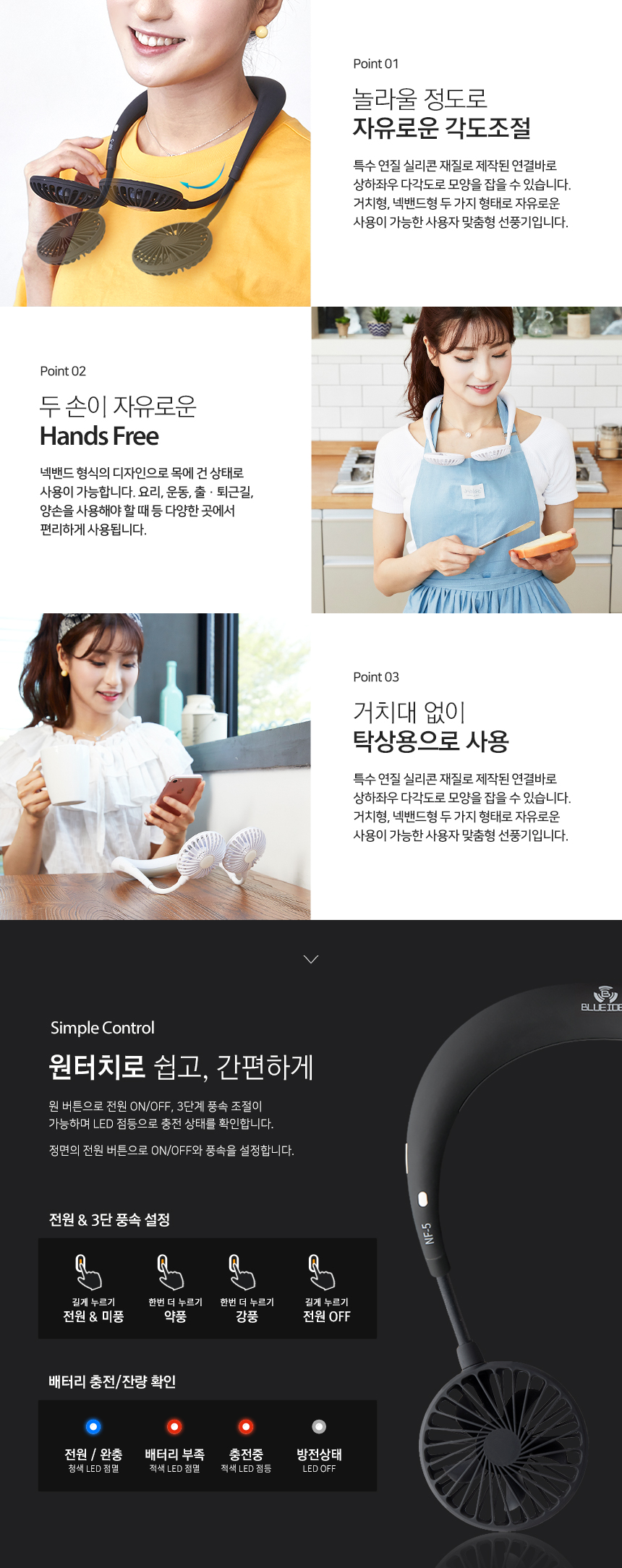 블루아이디 넥밴드 선풍기 상세페이지