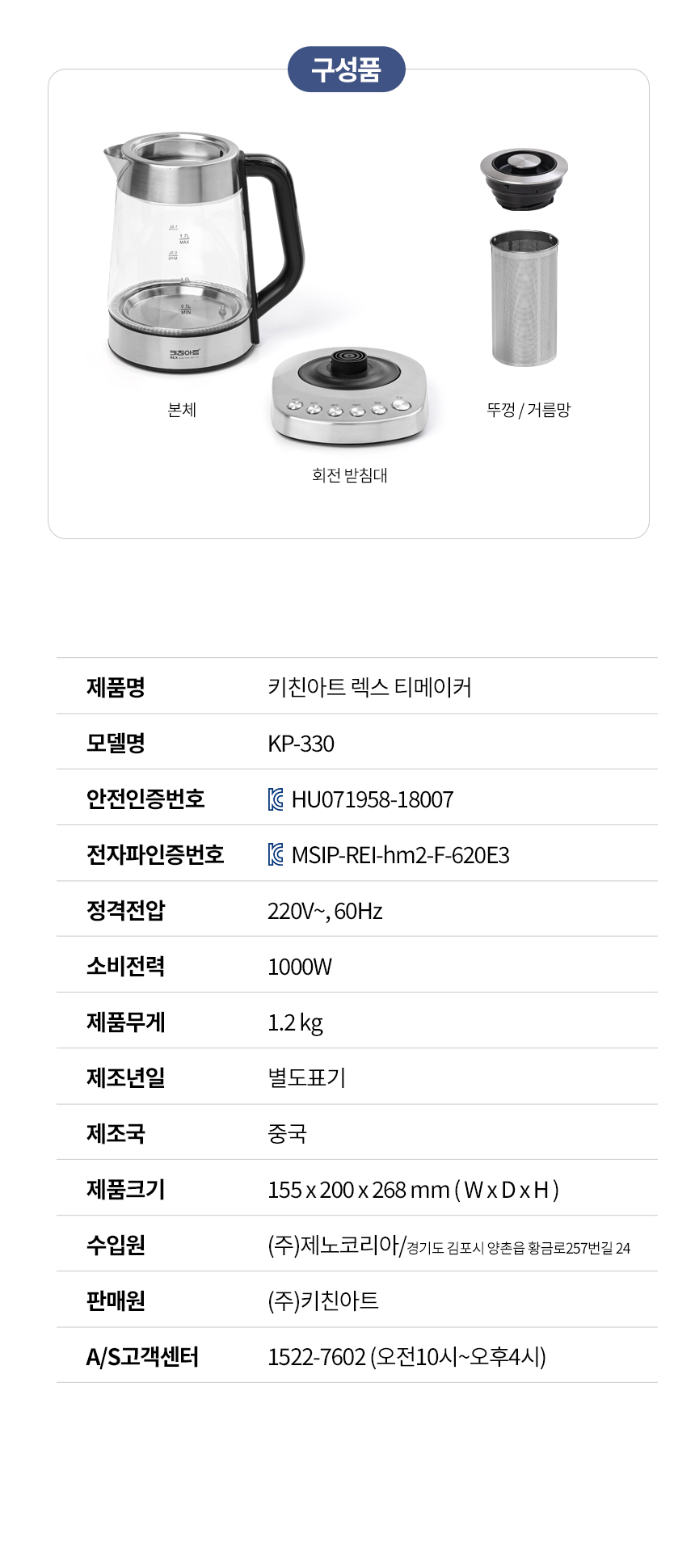 키친아트 유리 전기포트 상세페이지