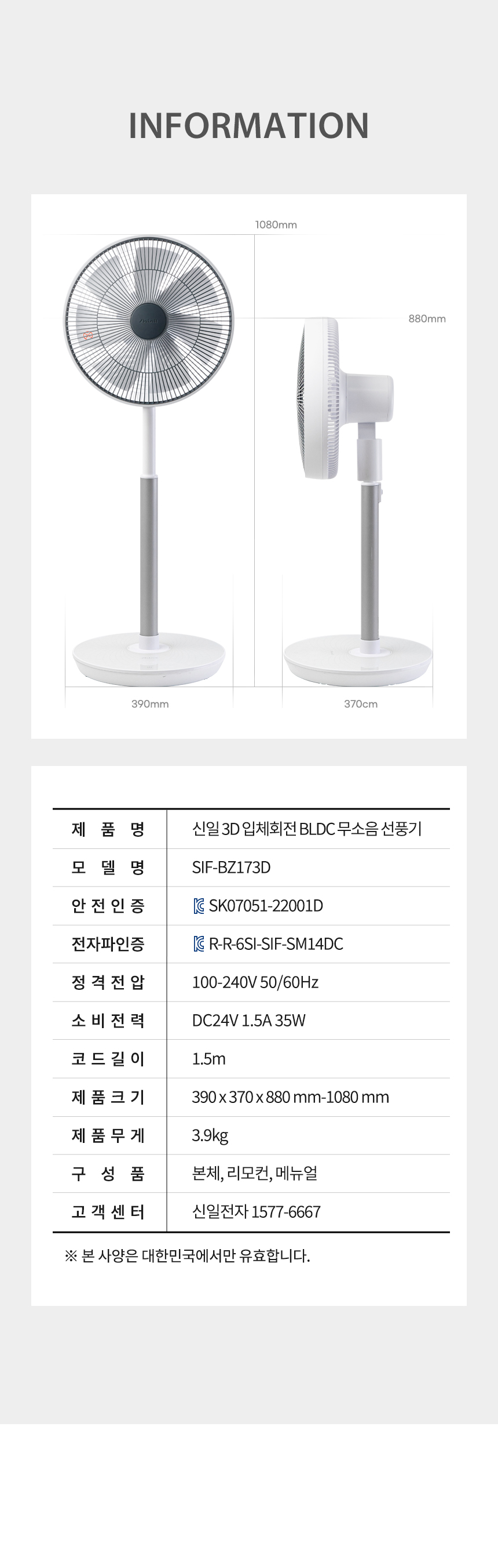 신일 3D 입체회전 선풍기 상세페이지